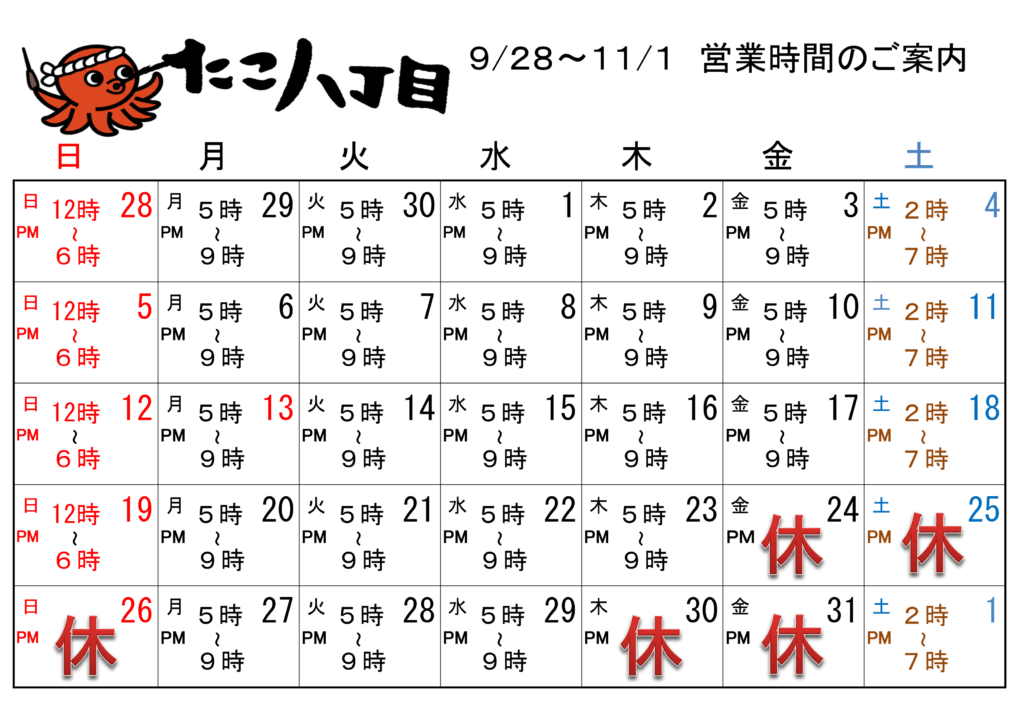10月24日(金)・25日(土)・26日(日)・30日(木)・31日(金)を休業とさせていただきます。